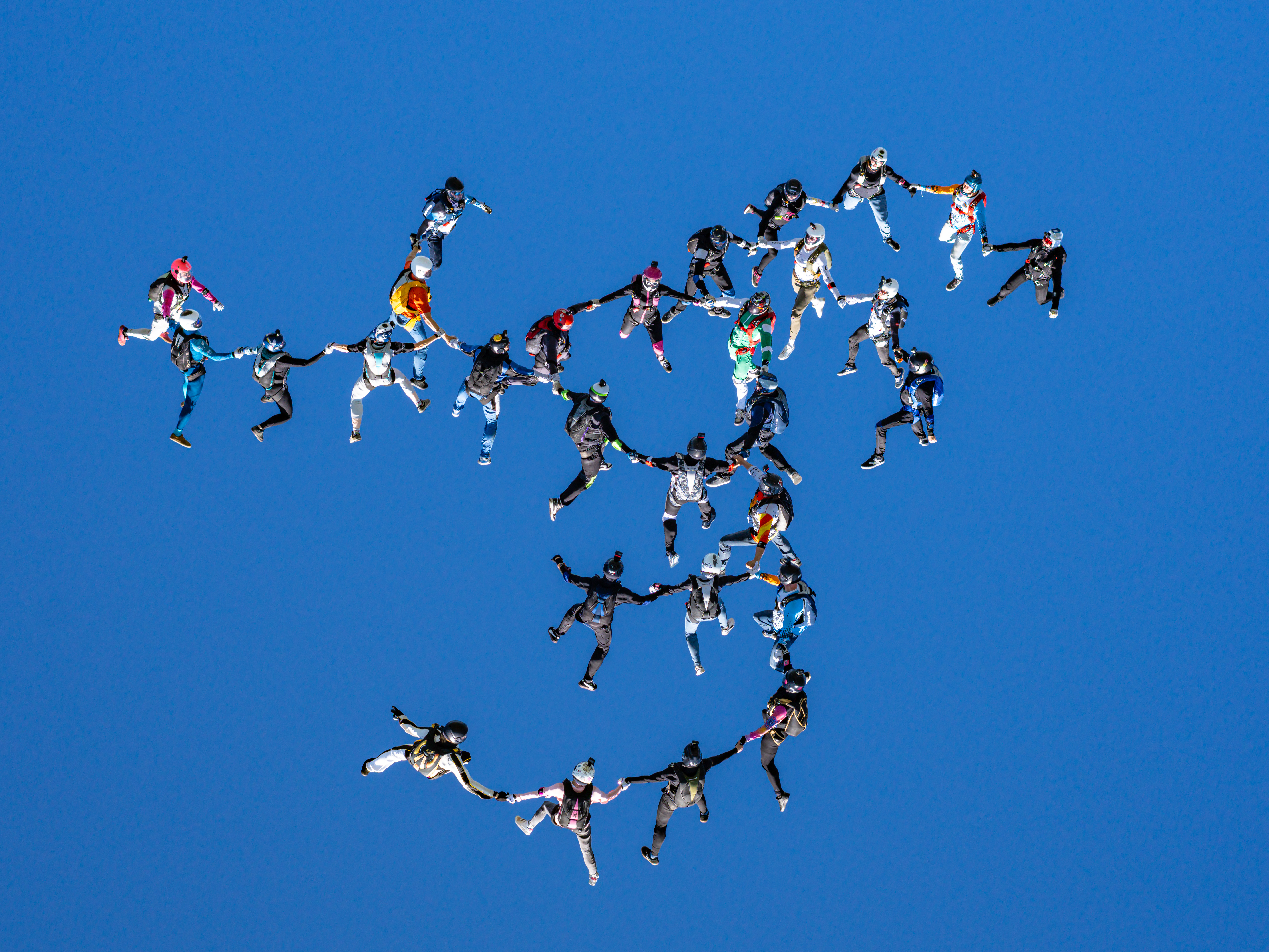 Keskiviikkopäivä jatkui vielä 30-way-hypyllä, joka myös saatiin kokoon. Näin uusi ennätys on 30 hyppääjän head-down-muodostelma.
